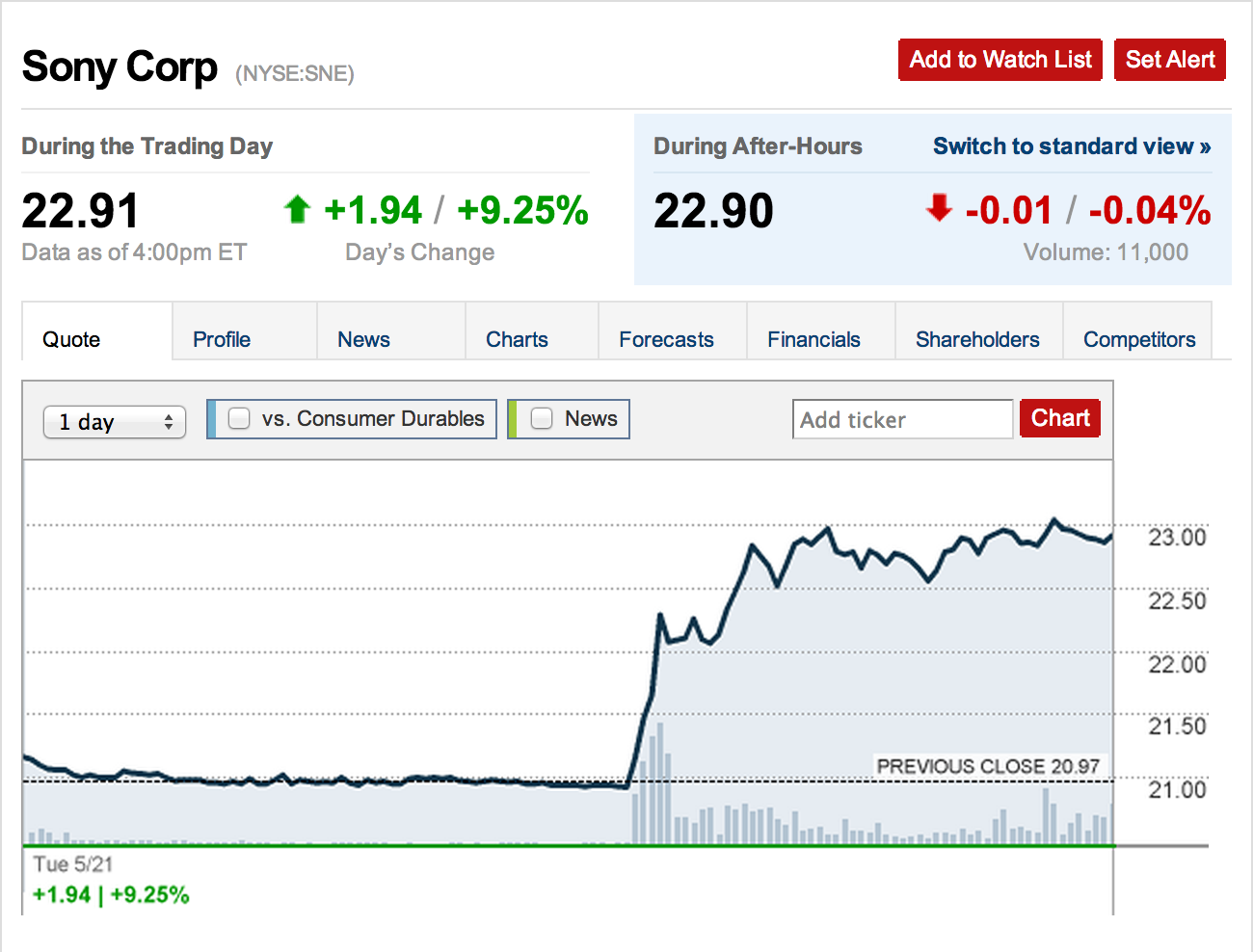 • Sony Stock Price Jumps Up 9% Following Xbox One Reveal