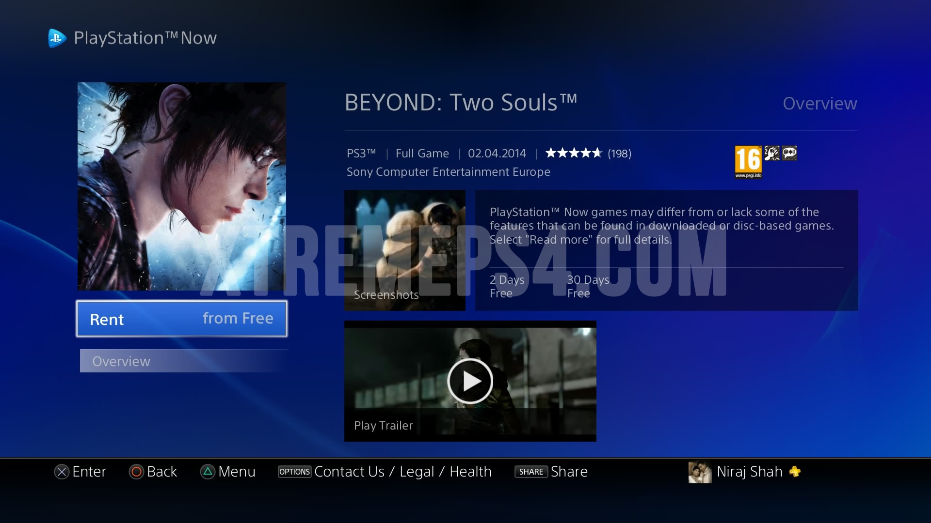 Sony has also sent me a confirmation email about the rental of BEYOND: Two Souls: