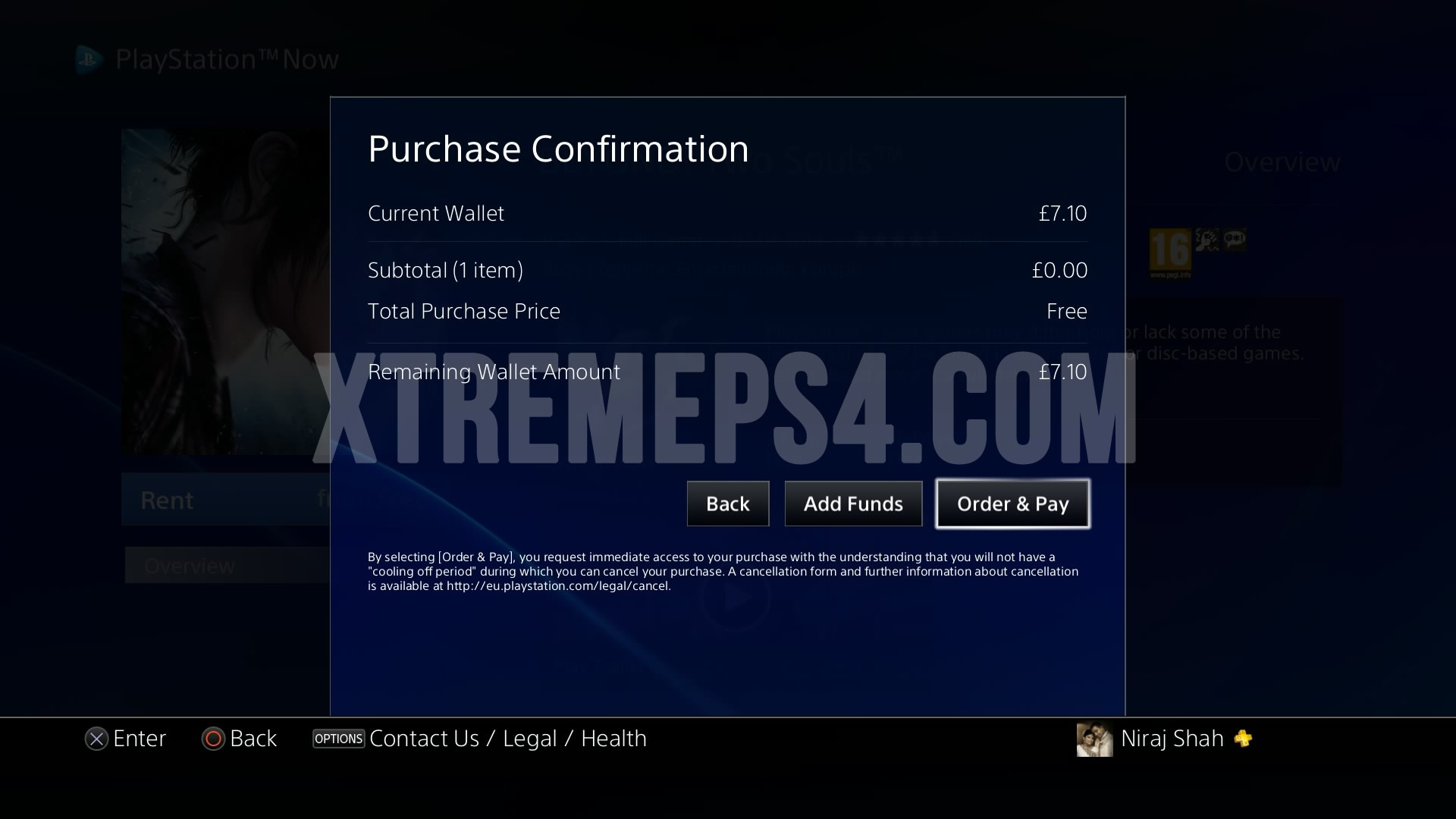 The screenshots below show that when purchasing a game, the checkout screen shows my balance in GBP£. You will also notice that “Purchase Confirmation” screen includes a reference to the European PlayStation website.