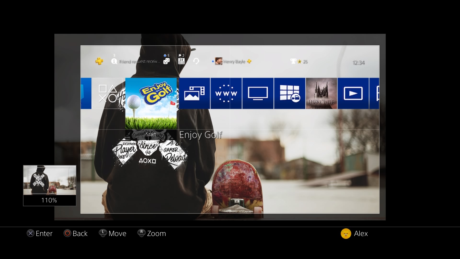 By popular demand, you can now import your own images via USB stick to use as custom wallpapers on PS4. Once imported, you can even zoom, crop and preview them in-situ to help get the perfect look on your dashboard. Note that the picture files on a USB stick need to be located in a folder named “IMAGES” for the PS4 to recognize them. Just go to Settings > Themes > Select Theme > Custom > Select Image > USB Storage Device.